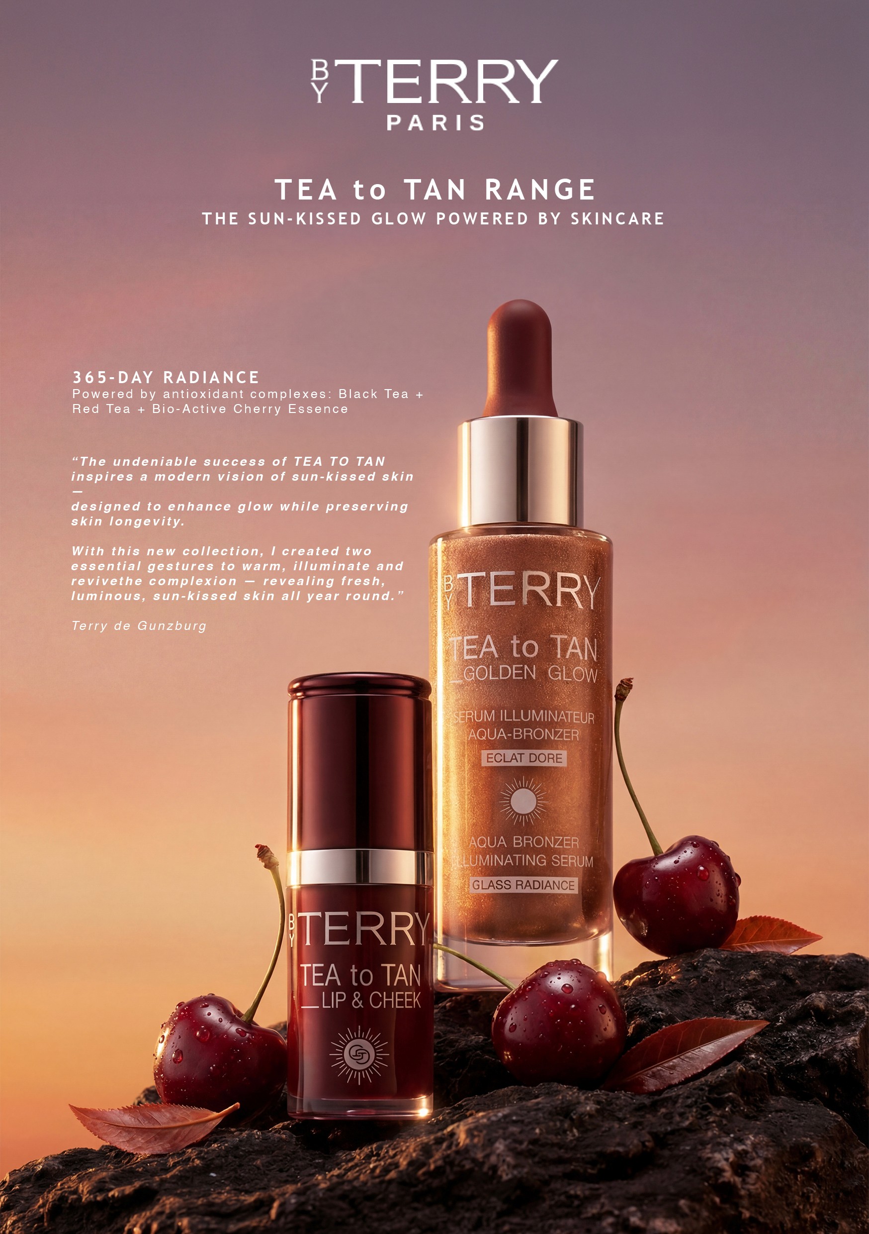 Creative proposal for the launch of two new products within the TEA TO TAN franchise by By Terry. A sun-kissed visual exploration blending skincare and makeup, where light, texture and colour enhance natural radiance. The project includes a minimalist press format and a series of complementary visuals designed to elevate the brand’s luminous aesthetic.